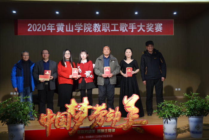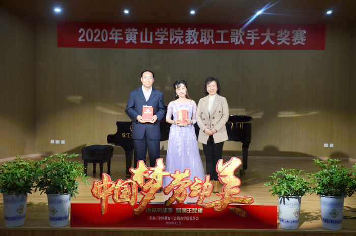 经过比拼,最终信息工程学院分工会何聚老师的《红旗飘飘》,外国语学院分工会徐慧老师的《金梭和银梭》获得一等奖;信息工程学院分工会刘承红老师的《父亲的草原母亲的河》,旅游学院分工会李瑛老师的《祝福祖国》,机关二分工会叶继发老师的《卓玛》,旅游学院分工会刘念老师和艺术学院分工会汪亭云老师合唱的《我的梦》获得二等奖;建工学院分工会汪婷婷老师的《少年》,机电学院分工会程佳鸣老师的《演员》,艺术学院分工会汪洋老师的《听海》,生命与环境科学学院分工会马涛老师的《鸿雁》,机关二分工会胡静老师的《烟雨行舟》,文化与传播学院分工会汪家庚老师的《今天是你的生日中国》获三等奖。