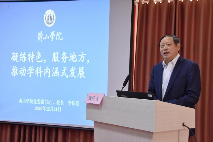 12月31日上午,2020年黄山学院学科建设高峰论坛在黄山润一生态有限公司赛训中心二楼会议室举行。校党委书记汪枫,党委副书记、校长李铁范,党委委员、副校长张德学,河南科技学院校长李成伟,淮北师范大学副校长李福华,安徽工程大学副校长费为银等出席会议。