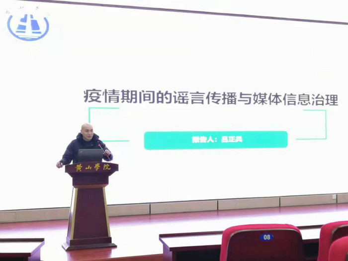 1月6日,我校行知讲坛第一百二十讲(博士专场)在率水校区文端楼二楼报告厅举行。文化与传播学院新闻学专业副教授、在读博士吕正兵应邀作题为《疫情期间的谣言传播与媒体信息治理》的报告,全院共300余名师生参加。