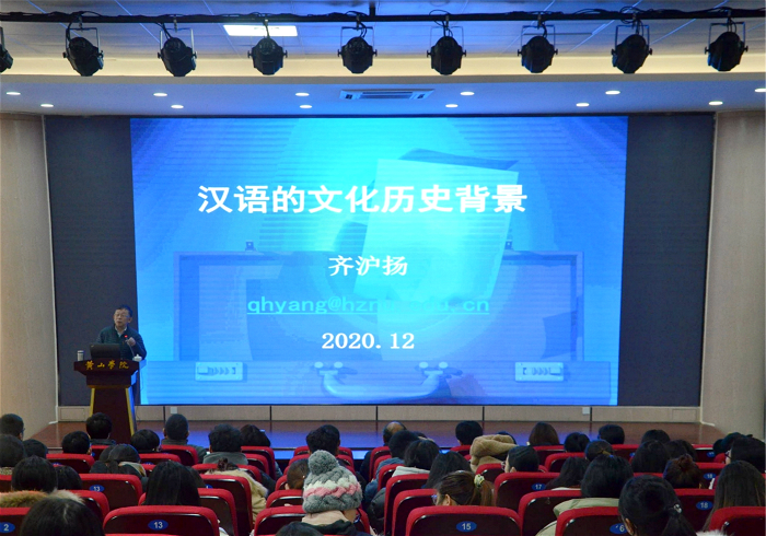 1月8日下午,全国知名学者齐沪扬教授应邀来我校文端楼二楼报告厅作《汉语的文化历史背景》的学术报告,文学院师生近300人参加报告会。副院长沈昌明主持报告会。