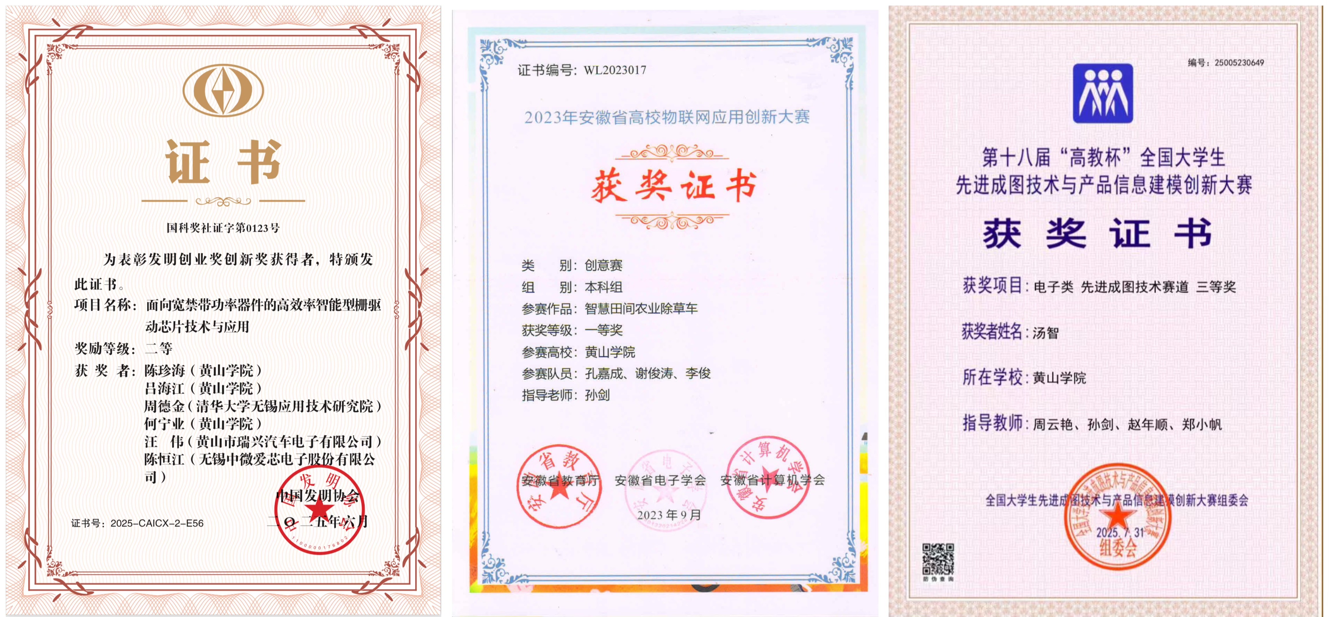 2023年11月,安徽省功率集成电路工程中心正式获批,团队以此为核心平台,面向黄山市新能源汽车电子及功率半导体集成电路两大产业群,为安徽省重点打造“新能源汽车产业”和“集成电路产业”提供复合型人才培养与科研创新双重支持;2024年,中心成功入选工信部教考中心电子信息重点领域产才融合基地,成为全国13个产才融合基地之一,这份荣誉,是对团队产教融合成果的最高认可。