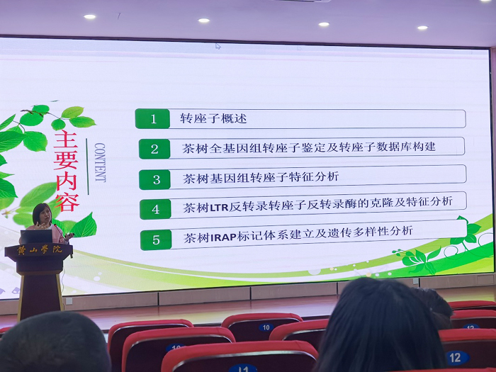 报告会上,李晓毓从平常的玉米、番茄等农作物入手向大家重点介绍了茶树的转座子的研究现状,包括转座子的挖掘、鉴定、分类、注释、数据库的构建、转座子序列的分离,以及基于反转录转座子的IRAP标记体系的开发应用。她结合自己在茶树方面关于转座子的研究为大家展现转座子在各个领域的神奇应用。报告会生动有趣,激发了在场学生的学习与科研热情。