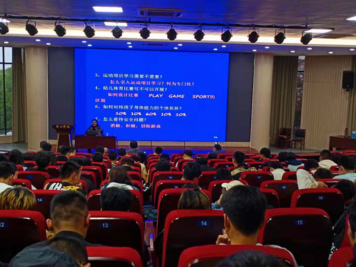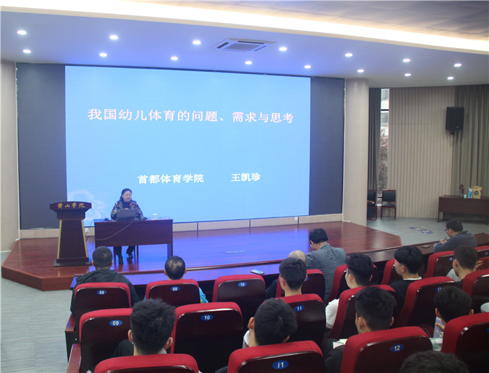 授聘仪式结束后,在文端楼二楼报告厅,王凯珍教授为体育学院师生作了题为《我国幼儿体育的问题、需求与思考》的学术报告,该院党总支书记杨和健主持报告会。