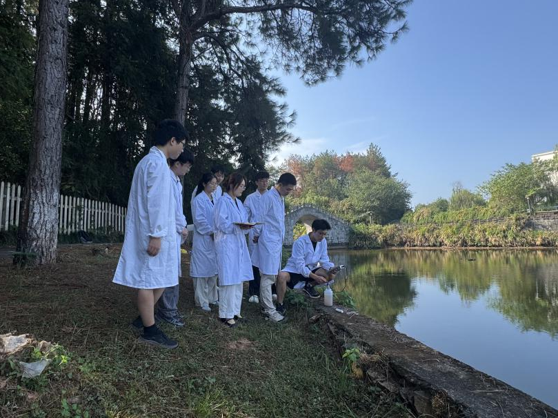 课堂上,教师们生动呈现环境科学前沿进展,以巧妙比喻将晦涩知识通俗化,让学生切实感受到前沿科学并非遥不可及。在实验室与野外,则侧重实操指导。野外考察时,教师手把手教学生采集水样、操作仪器,分析新安江水质变化;实验室里,他们又与学生并肩作战,深入探究各类数据背后的科学问题。同学们感慨:老师不仅传授知识,更让我们体会到环保人的责任与使命。我们是以准职业人的身份,在解决真实的社会问题。