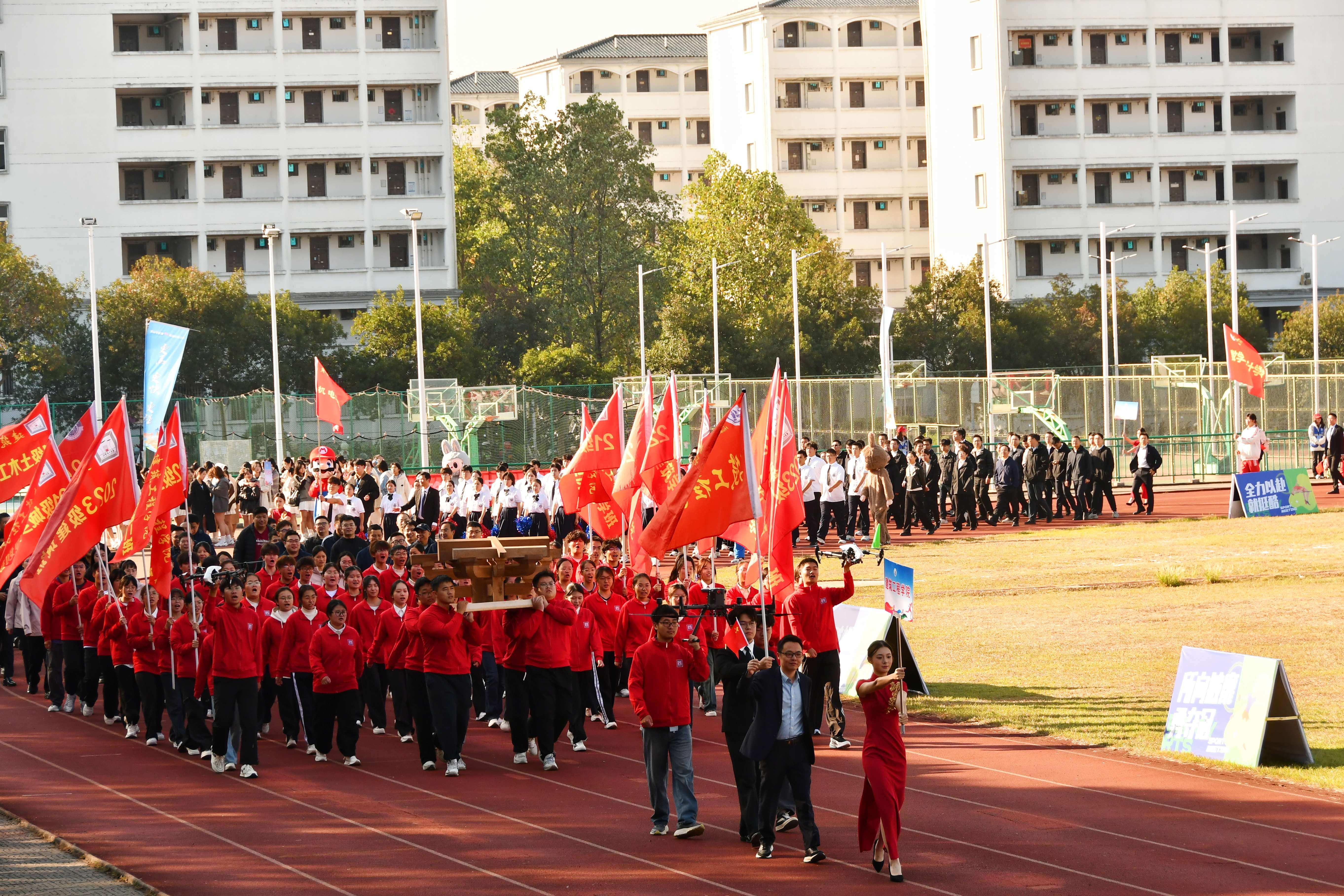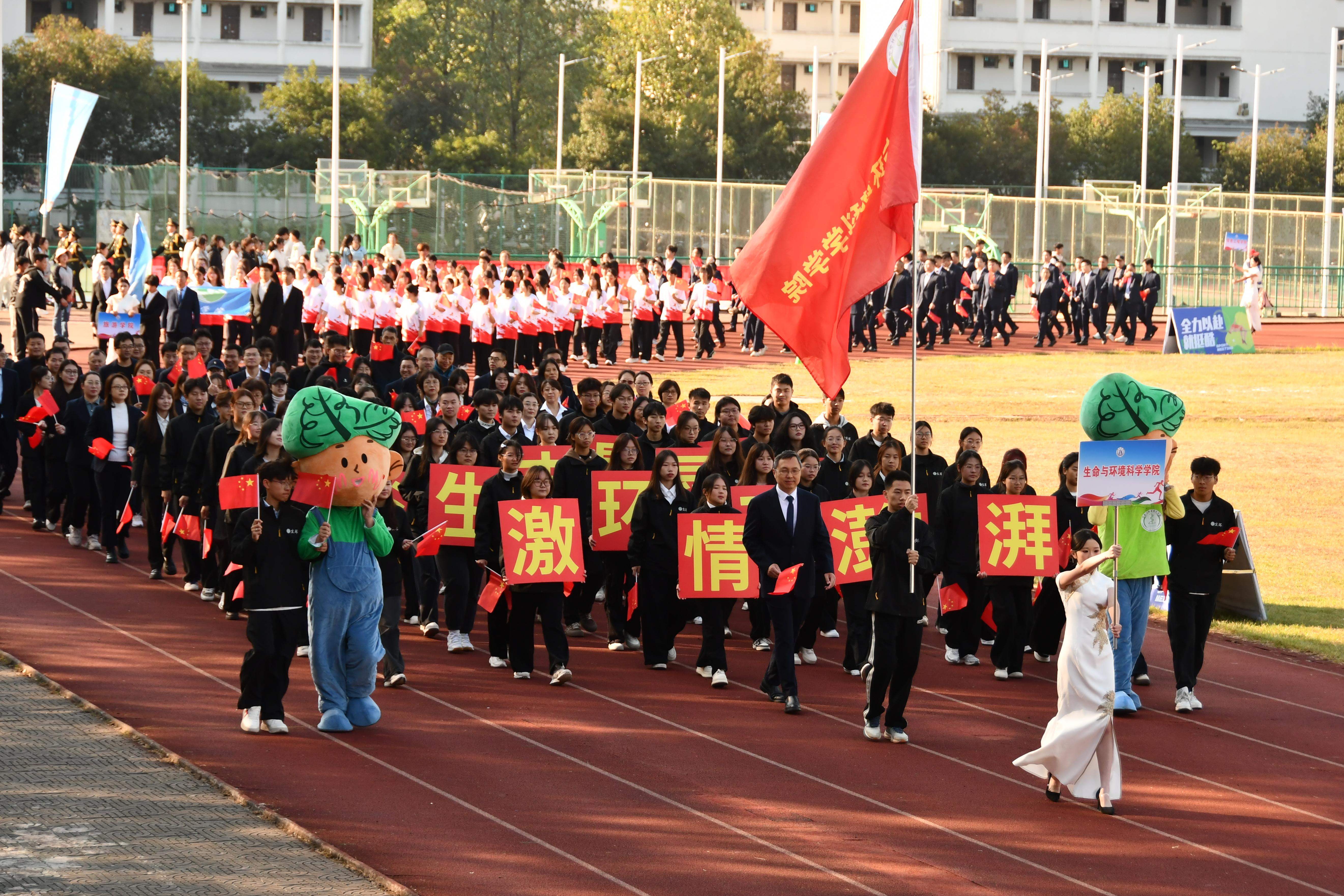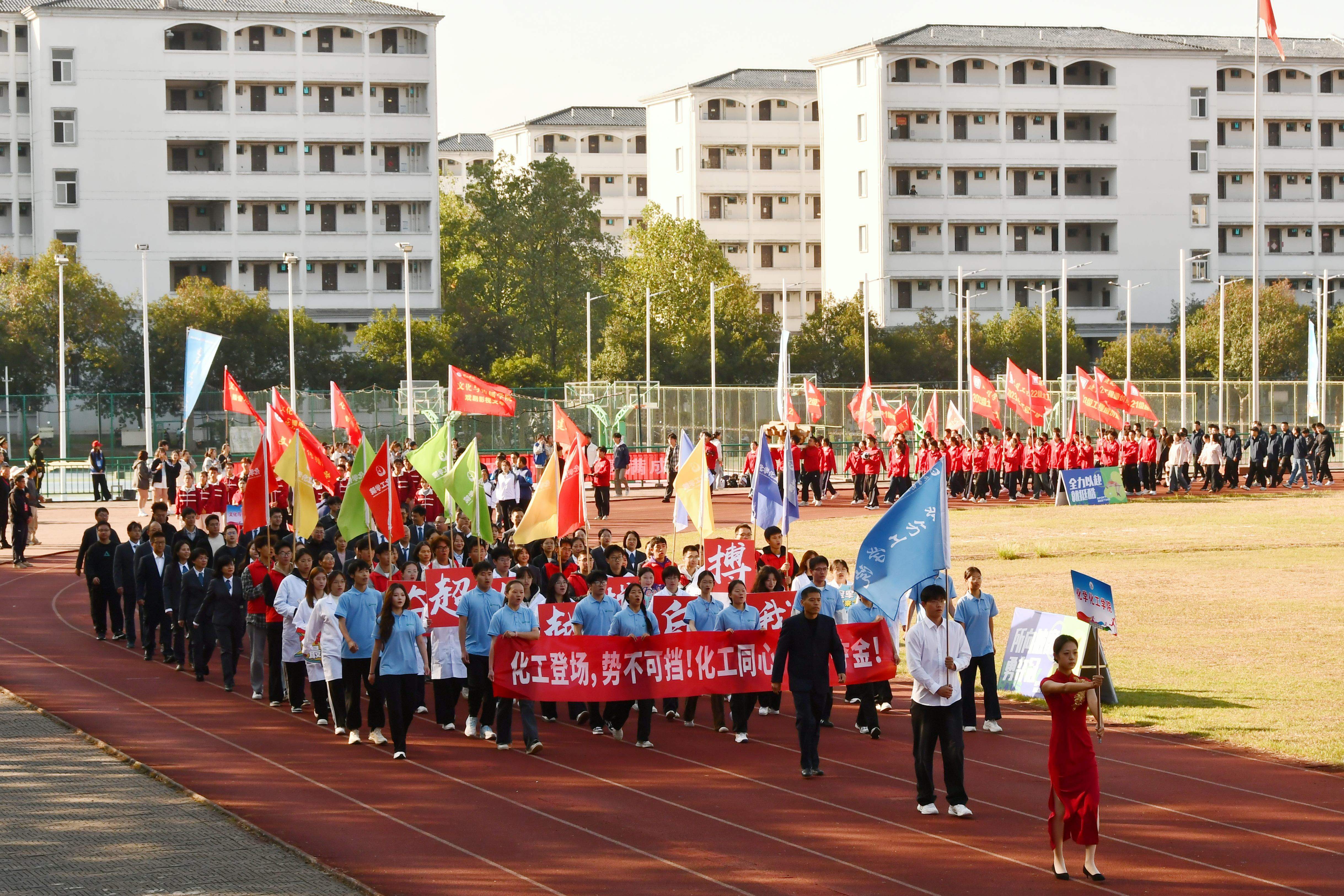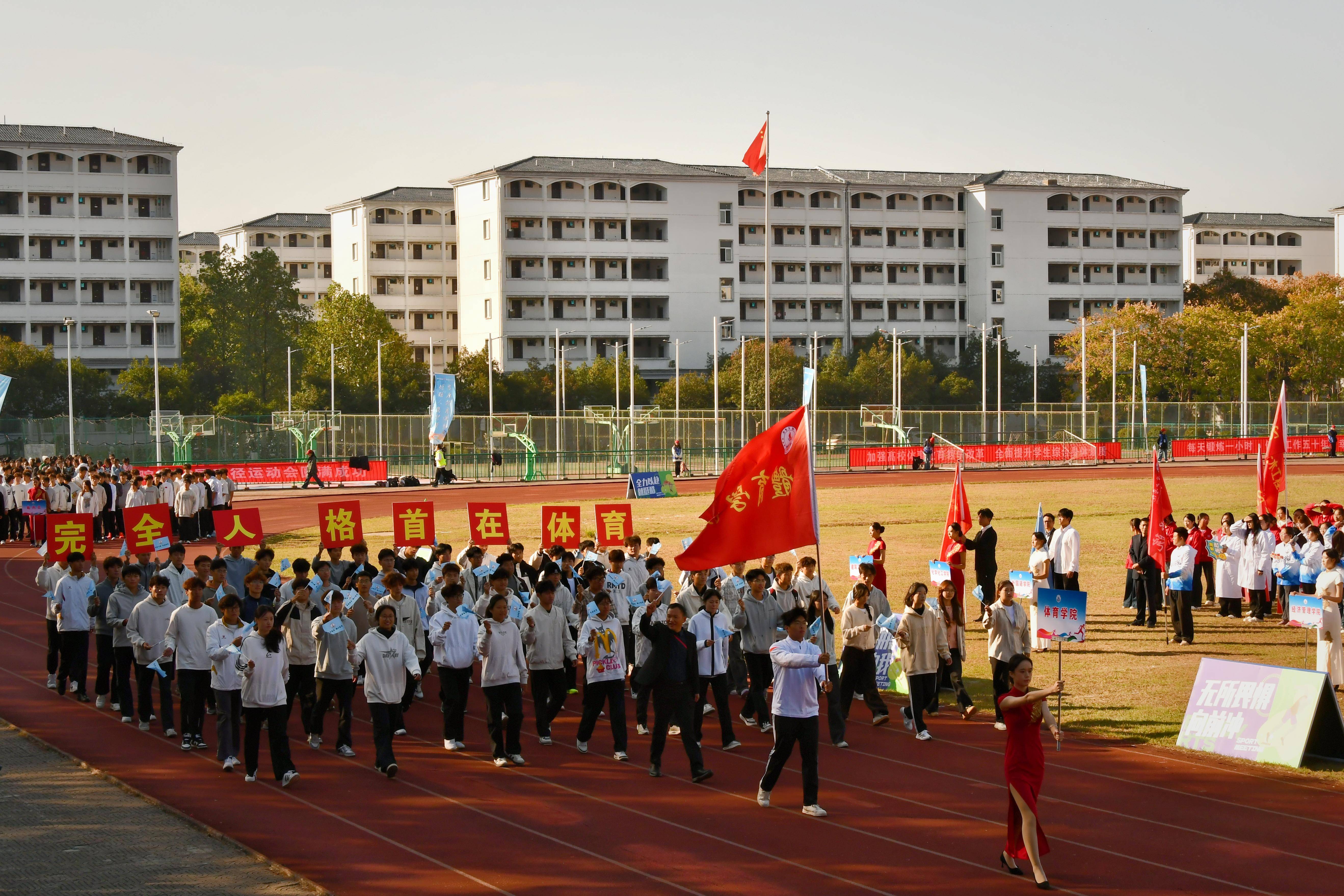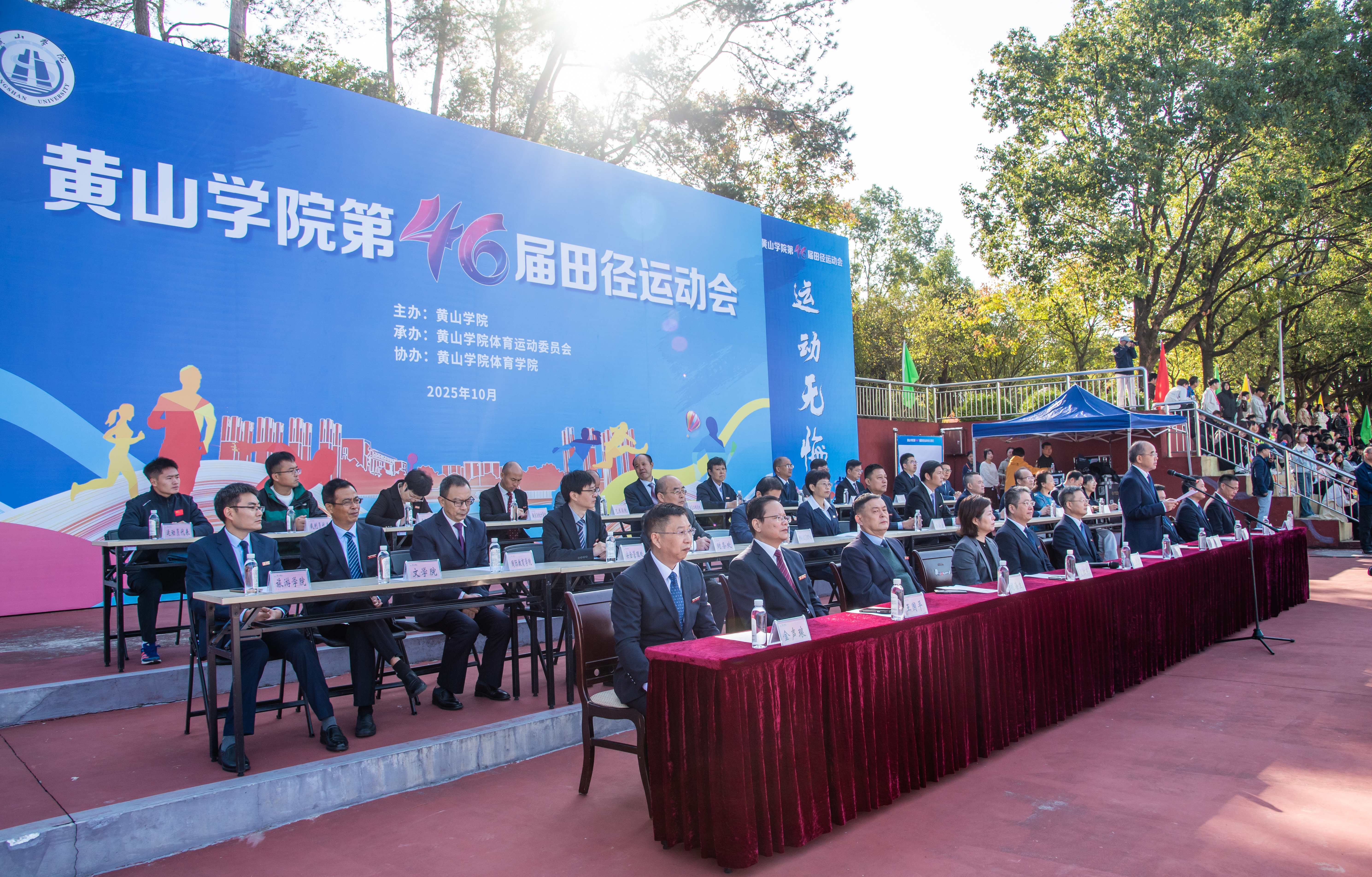 秋高气爽盈校园,彩旗猎猎映朝阳。10月23日上午,我校第46届田径运动会在率水校区第一田径场开幕。校领导李庆宏、刘力、张小明、胡海生、方辉平,黄山市体育局党组书记、局长宣红燕出席开幕式。校体委副主任、校体委各组成部门的主要负责人、各学院书记参加开幕式并在主席台就座。开幕式由校党委委员、副院长张小明主持。