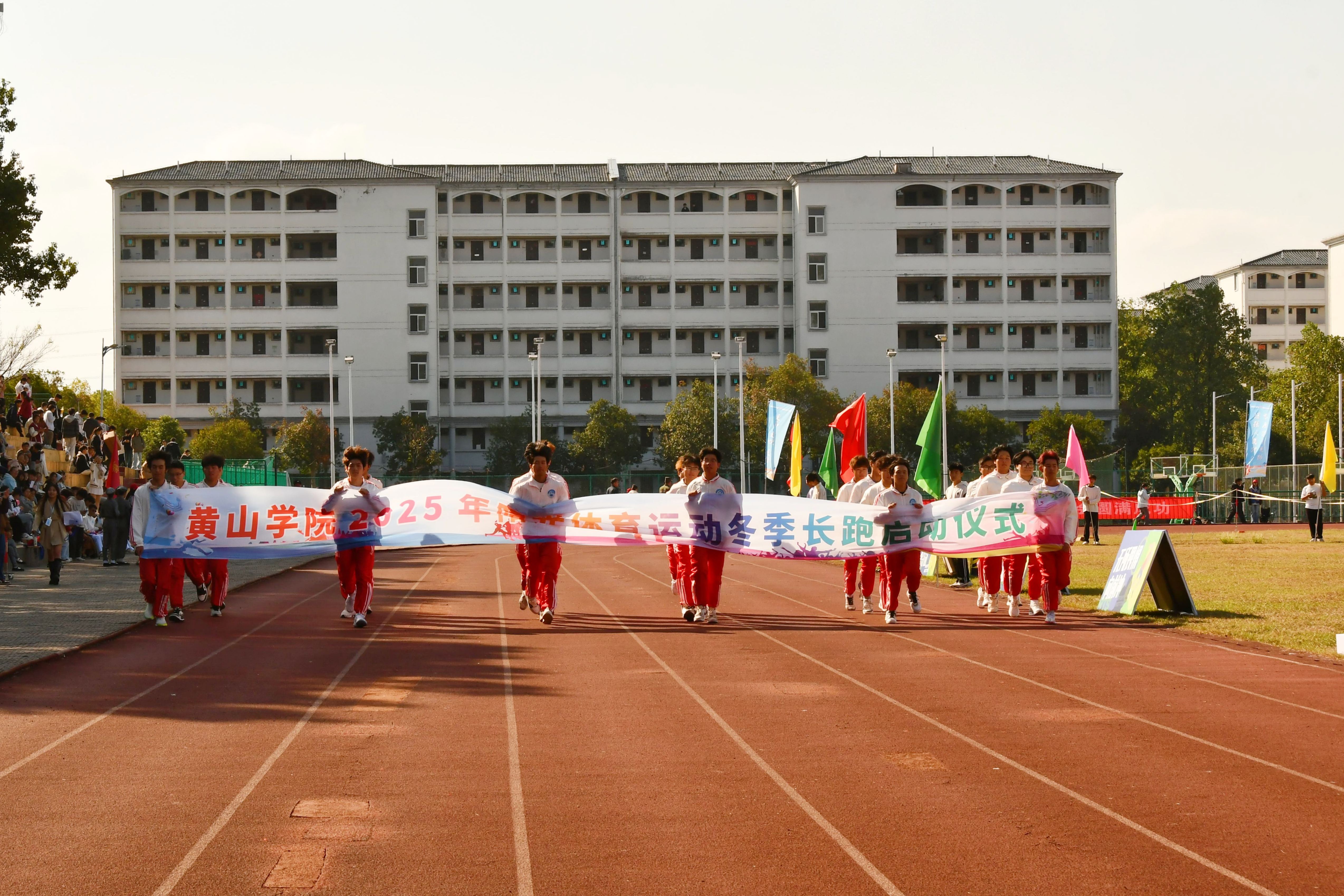 为积极践行“阳光体育” 活动,开幕式上同步启动黄山学院阳光体育冬季长跑仪式。数学与统计学院学生代表队率先领跑,正式拉开冬季长跑崭新征程。