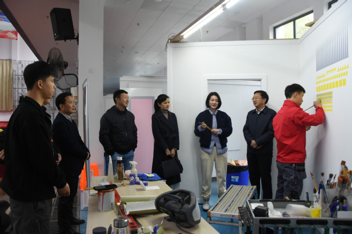 汪枫一行实地查看了油漆与装饰、园艺两个项目的集训场所,并同参与集训的选手、教练和指导教师进行交流,仔细询问选手的生活、训练等情况。随后,汪枫一行在集训基地会议室与兄弟院校教师、集训基地专家教练、入选国家世赛队三位选手进行座谈。