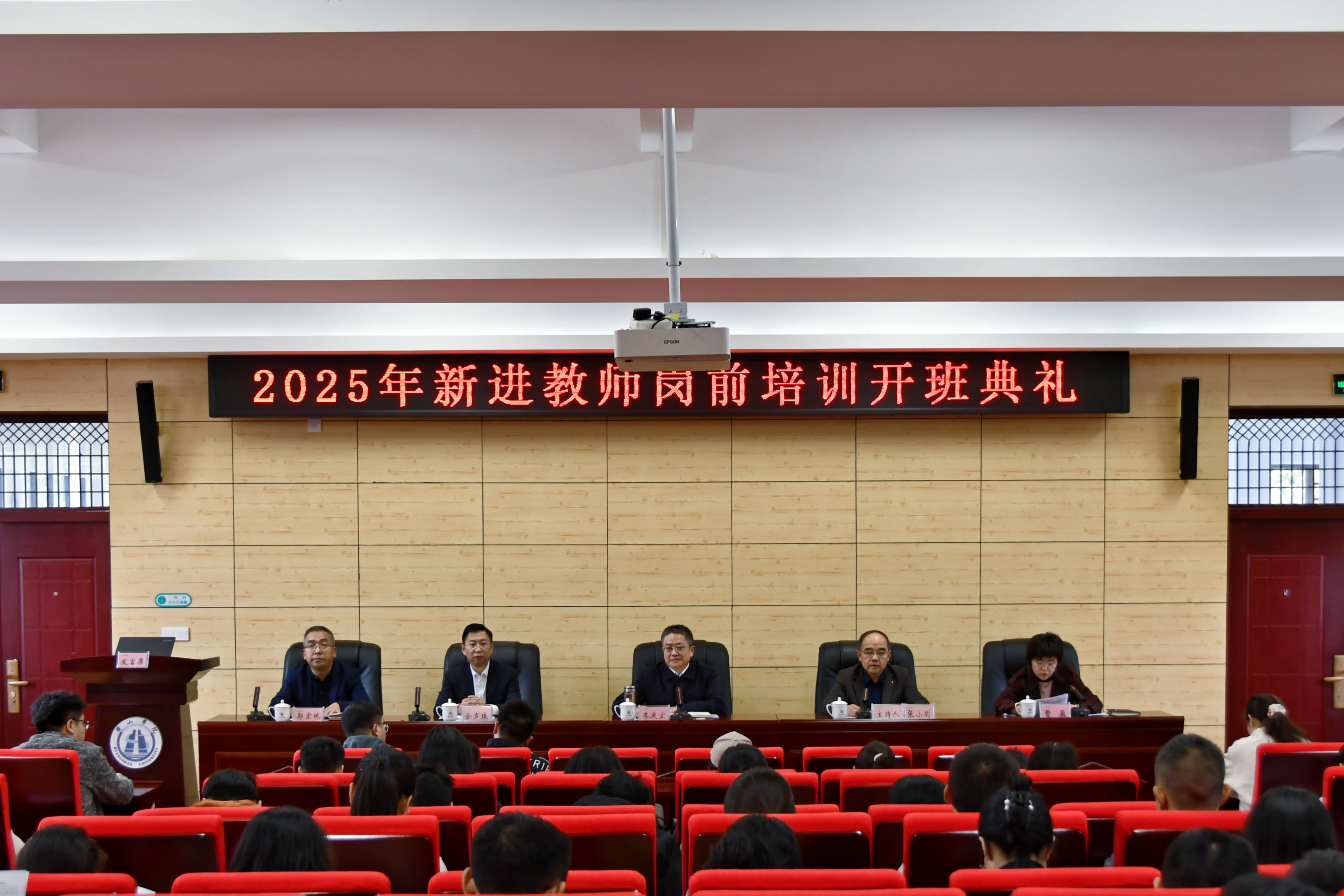11月5日下午,2025年安徽省高校新进教师岗前培训黄山学院教学点开班典礼在我校文昌南楼211报告厅举行。校党委副书记、院长李庆宏,党委委员、副院长张小明出席典礼。人事处、教务处、科研处负责人及全体学员参加典礼。开班典礼由张小明主持。