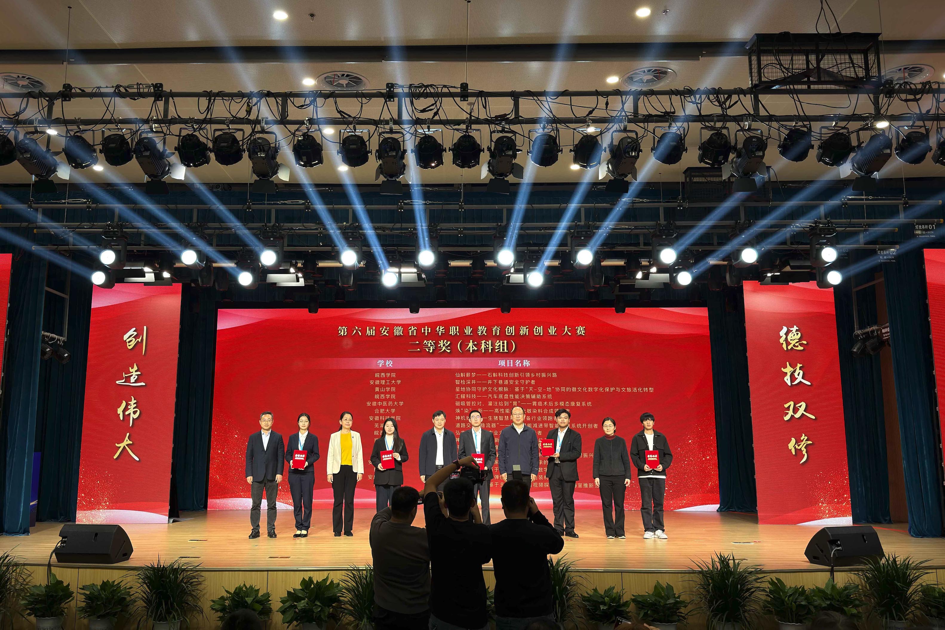 11月16日,由安徽省中华职业教育社、安徽省教育厅、安徽省人力资源和社会保障厅、安徽省总工会主办的第六届安徽省中华职业教育创新创业大赛现场决赛落幕,我校艺术学院参赛项目《数字孪生徽韵新生》获本科组二等奖。