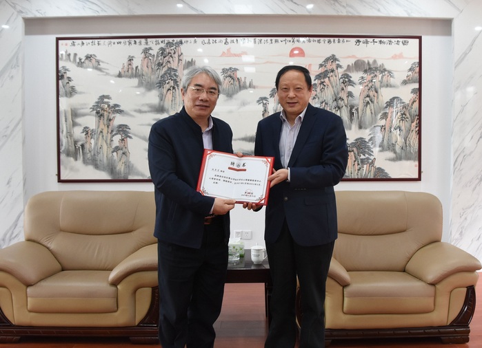 4月15日下午,为加强我校常态化疫情防控心理健康督导工作,校党委副书记、校长李铁范代表学校向中国科学院心理研究所祝卓宏教授颁发心理督导师聘书。