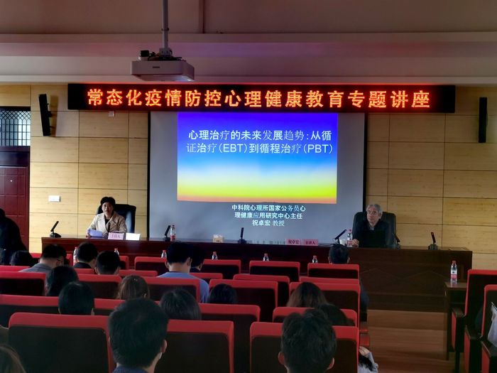 双方就校所合作、心理督导、学科共建等方面进行了充分交流。会后,祝卓宏教授应邀作了“心理治疗未来趋势:基于过程的心理治疗(PBT)”专题讲座,就心理科学研究的前沿领域与校内外专家、教师、医师充分交流,阐明了当前心理治疗领域面临的问题与挑战,从循证治疗到循程治疗的发展趋势,接纳承诺疗法未来发展前景,对学生心理咨询、危机干预工作方法进行了生动诠释。