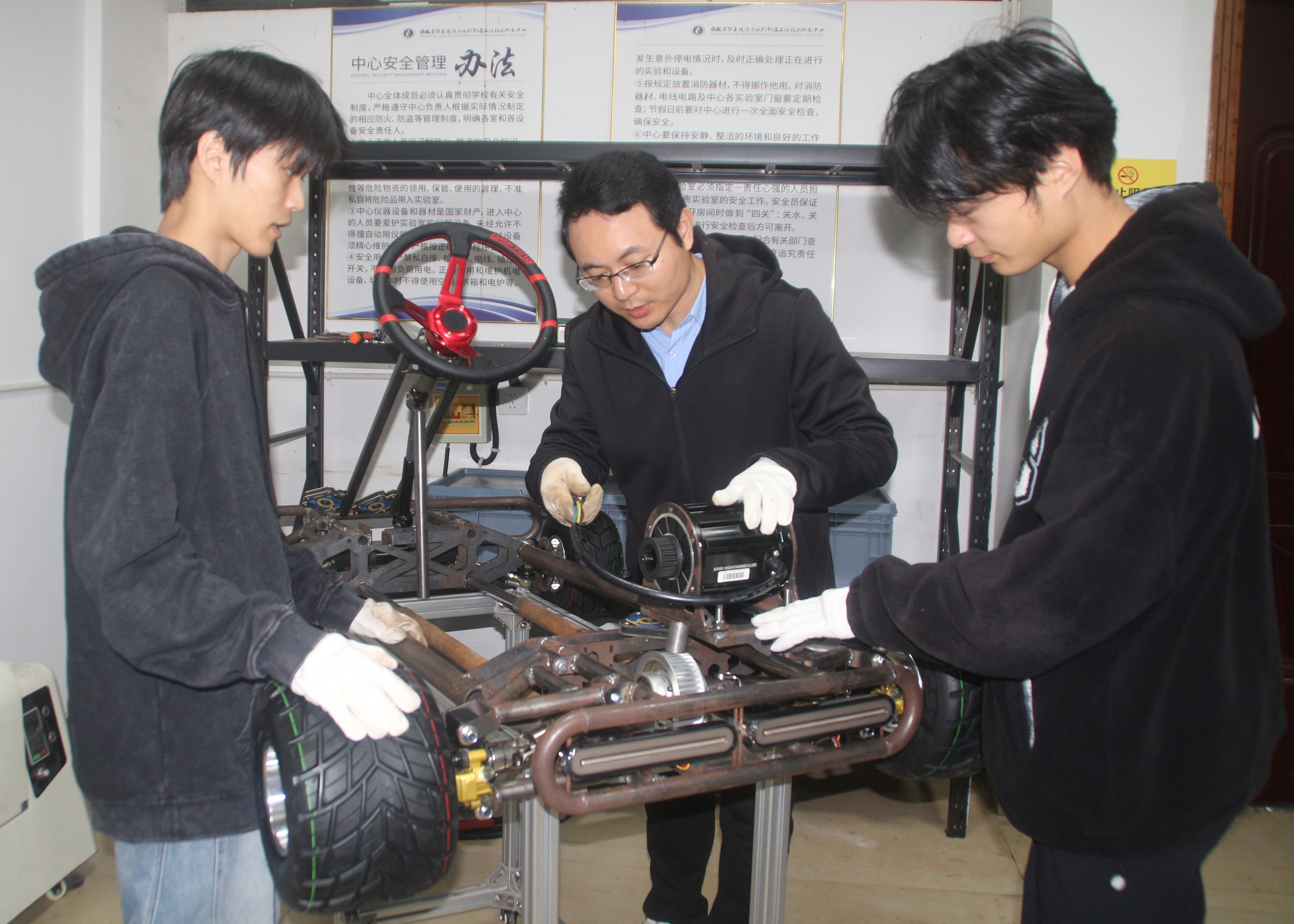 这种“理论-实践-创新”培养模式,让知识转化为硬实力。全国大学生先进成图大赛国家一等奖获得者朱朝鑫,在老师“手把手”指导下,从图纸规范到工程表达反复打磨,实现了从“会画图”到“懂工程”的蜕变;赛车项目成员张磊初入团队时连卡尺都拿不稳,如今已能独立完成车架焊接、动力系统安装全流程,“第一次焊成达标车架时,手上的划痕都成了勋章”。