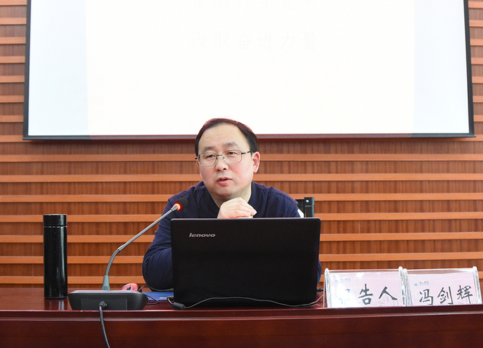 4月23日下午,我校在逸夫图书馆二楼报告厅举办党史学习教育专题辅导报告会。马克思主义学院教授冯剑辉作题为《重温百年党史 汲取奋进力量》的专题辅导报告。校领导李铁范、胡家俊、刘英旺、张德学、陈家祥,省委党史学习教育第十六巡回指导组组长王明胜、副组长陈华及其他成员出席报告会。报告会由校党委委员、党委宣传部部长张赛主持。