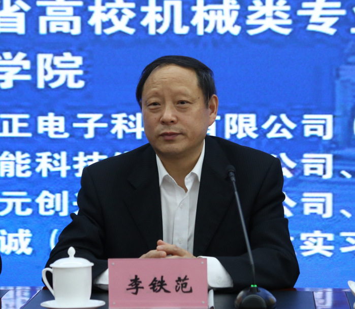 李铁范在致辞中介绍了我校基本情况及机电工程学院发展优势,他期望各位专家学者为我校的教学、科研、人才培养多提宝贵意见。他希望各校以本次论坛会议为契机,进一步加大沟通交流,相互取长补短,携手共进,推动我省机械类人才培养工作更上一层楼。