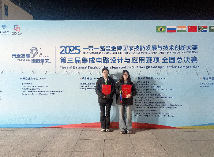 11月29日,在2025一带一路暨金砖国家技能发展与技术创新大赛之第三届集成电路设计与应用赛项全国决赛(以下简称“金砖国赛”)中,我校信息工程学院学生徐婷娟获得本科组全国二等奖,教师杨丹萍获得教师组三等奖。