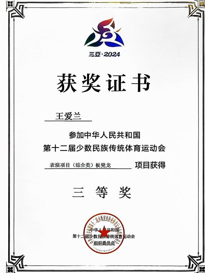 “以前觉得舞龙只是热闹,现在才懂每一个招式都藏着文化密码。”王爱兰至今记得,2024年代表安徽省参加第十二届全国少数民族传统体育运动会时,徽州板凳龙在全国舞台绽放光彩的瞬间。这枚表演项目三等奖的背后,是学校破解传统体育“碎片化、边缘化”难题的系统探索。