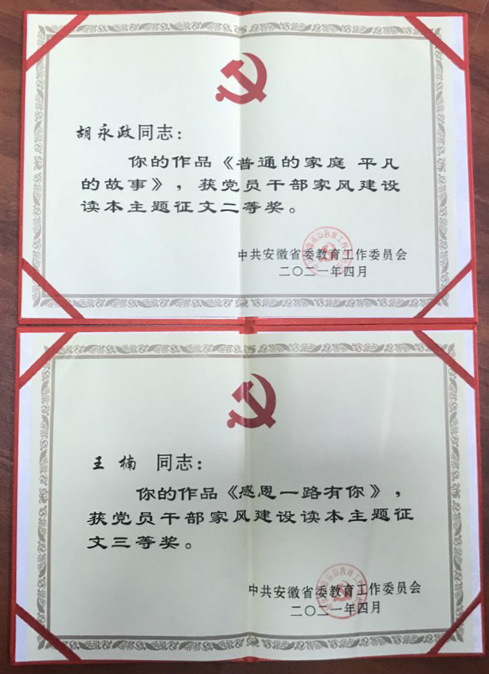 为切实宣传好学习好运用好党员干部家风建设读本《清风传家》《严以治家》,深刻认识习近平总书记关于家风建设系列重要论述的重大意义,引领广大党员干部进一步弘扬优良家风,传承中华美德,推动学校廉洁文化建设,今年年初以来,校纪委办公室与党委组织部联合开展了“清风·治家”主题征文活动。活动开展以来,广大党员干部积极参赛,踊跃投稿,共征集作品45篇。经过专家评审组认真评选,评出优秀组织奖2个,分别是机关党委和建筑工程学院党委;评出一等奖作品2篇,二等奖作品6篇,三等奖作品8篇,并选送2篇获奖作品上报省委教育工委。根据省教育工委近日发布的评选结果,我校经济管理学院党委书记胡永政同志的作品《普通的家庭 平凡的故事》荣获省教育工委该项活动二等奖,机电学院王楠同志的作品《感恩一路有你》荣获三等奖。