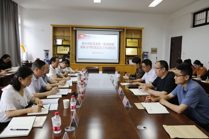 巡察组全体成员,文学院党总支领导班子成员、党支部书记、科级干部、全体教师和学生代表参加会议。