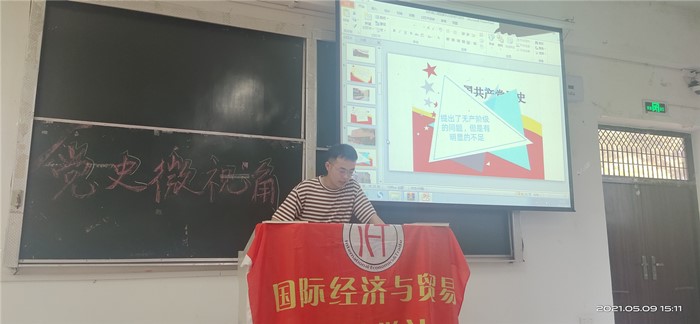 5月9日,我校国贸学社党史“微”视角分享活动通过拍摄校园微电影情景剧生动演绎党史故事,致敬党的百年风华,通过展现党史内容、提升艺术作品感染力和创新党史故事的有机融合,提升作品的教育性和艺术性。同时,活动通过线下ppt制作讲述的方式,进一步加深对党史内容的认识。