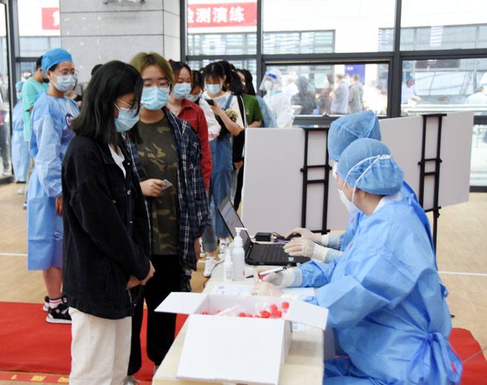 为检验黄山市核酸检测能力建设成果,进一步提高黄山市和我校疫情防控应急处置能力,做好常态化疫情防控工作,根据黄山市疫情防控指挥部统一安排,5月22日,我校核酸检测采样应急演练活动分别在率水校区风雨操场和横江校区教学楼报告厅举行。校领导汪枫、李铁范、胡家俊、胡善风、刘英旺、张德学到场指导演练活动并带头参加核酸检测,学校相关职能部门和二级学院负责人全程参与本次活动。我校近2万师生及教职工家属接受了核酸检测。