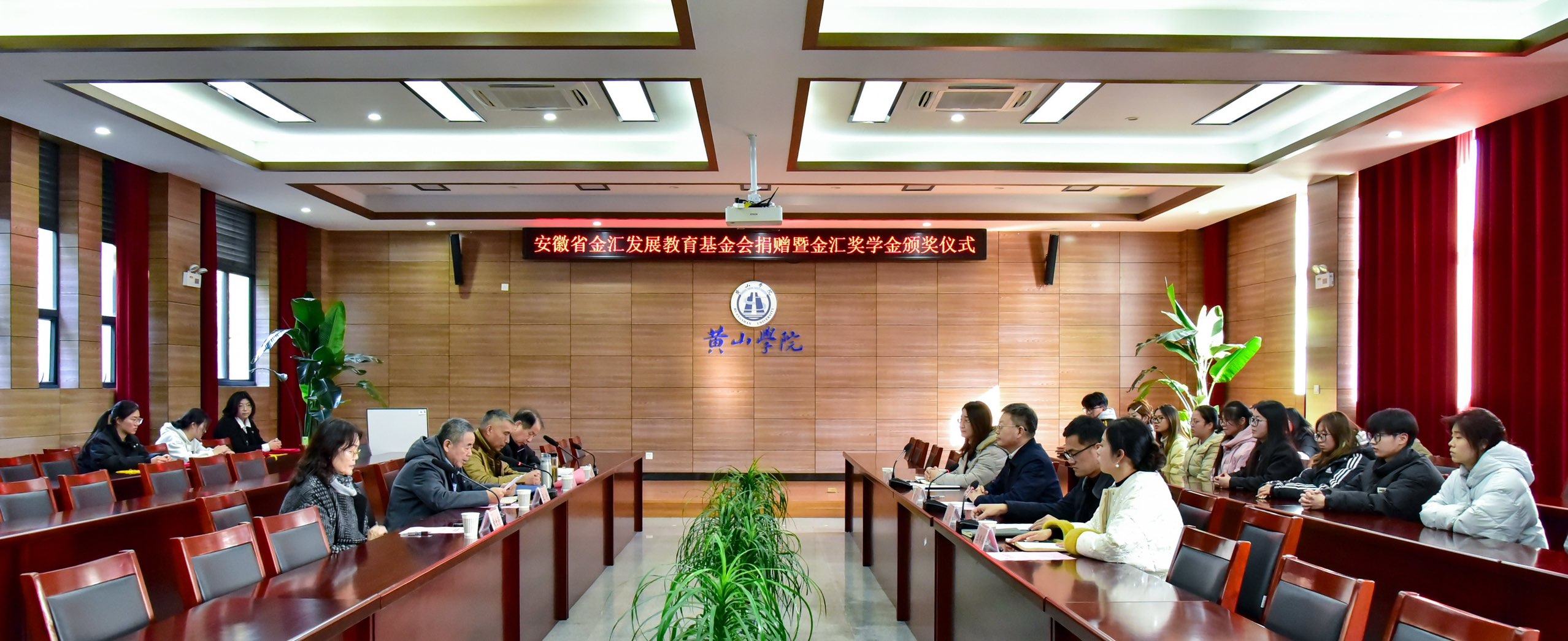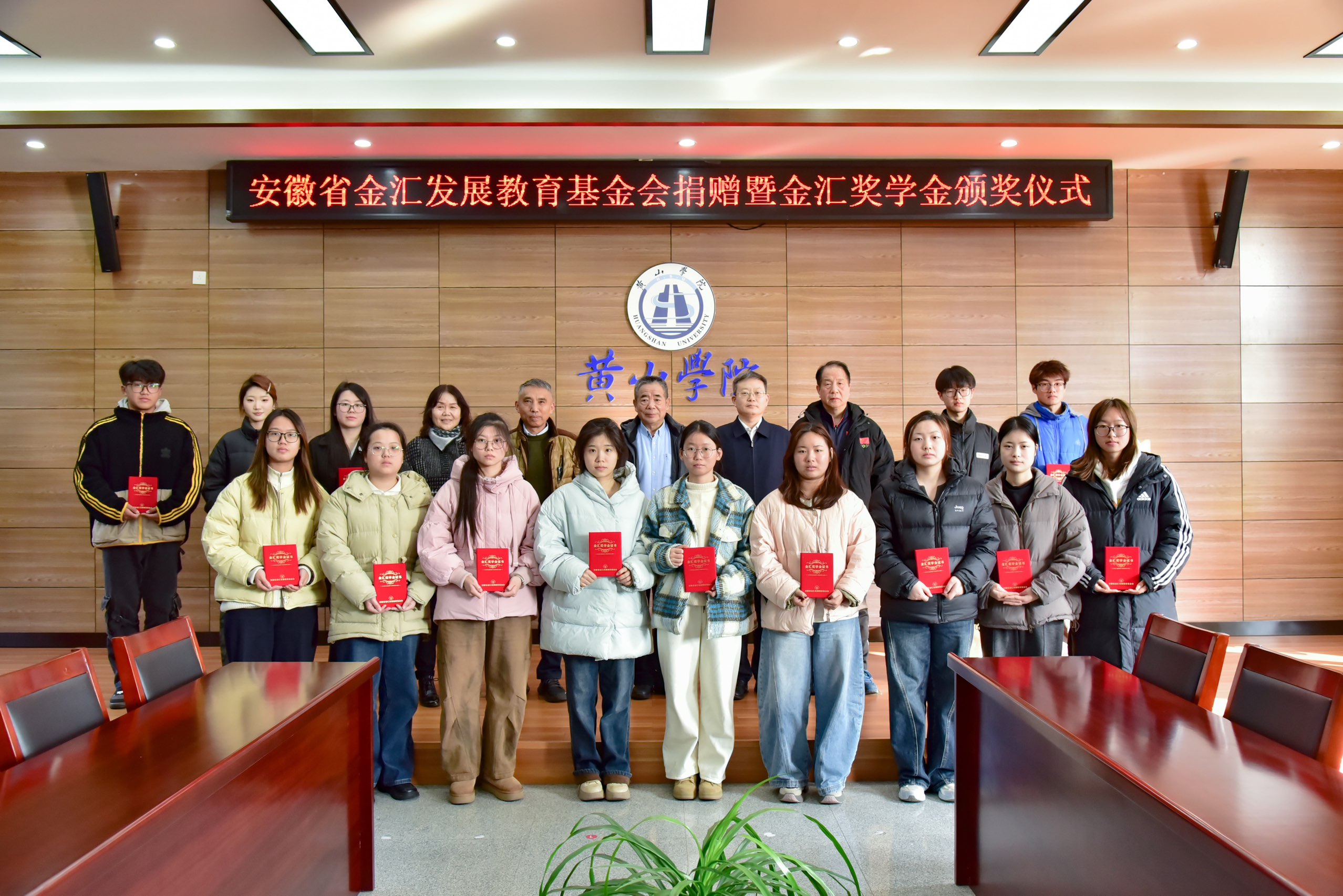 12月30日下午,我校在率水校区文昌楼南楼108会议室举行安徽省金汇发展教育基金会捐赠暨金汇奖学金颁奖仪式。校党委副书记刘力、安徽省金汇教育基金会理事长王进出席仪式,学生处、发展规划与社会合作处相关负责人及各学院获奖学生代表参加活动。