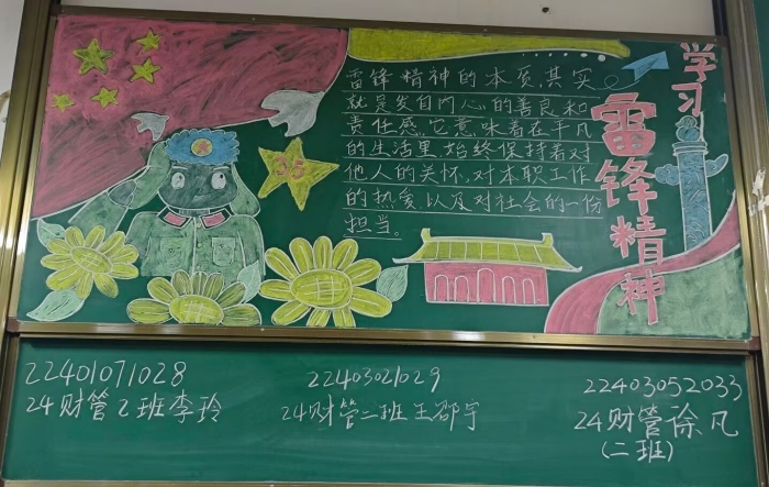 学院举办“版画绘雷锋,板书传精神”主题绘画活动。同学们以刀代笔、以板为纸,在方寸之间刻画雷锋肖像、描摹奉献场景。从勾勒轮廓到精雕细琢,每一刀都是对雷锋形象的再认识,每一笔都是对奉献精神的再思考。 作品完成后,同学们在教室黑板上写下自己的感悟,让墨香与版画相映成趣,让艺术创作成为精神传承的生动载体,使雷锋精神在笔尖流转中浸润心田。