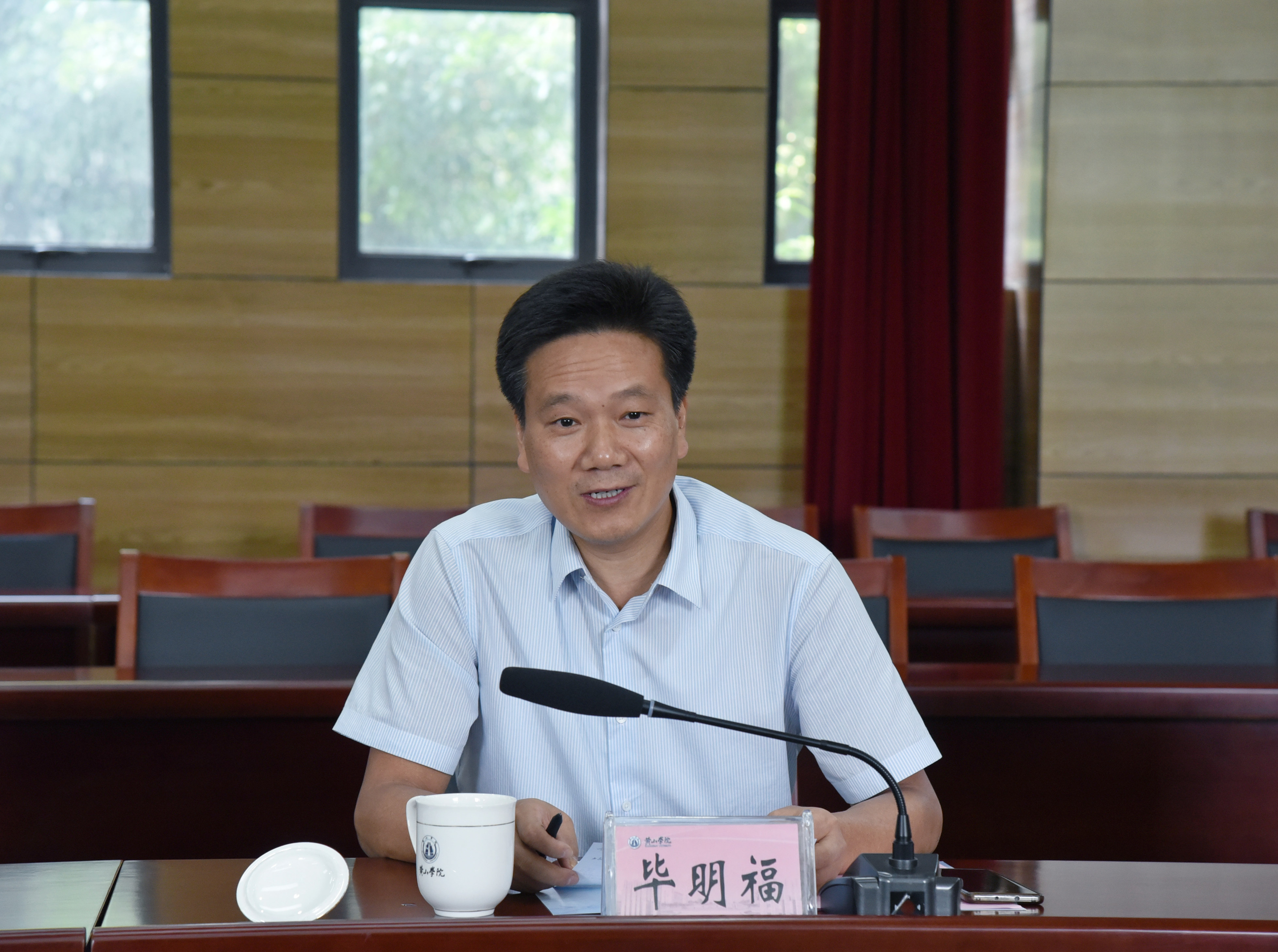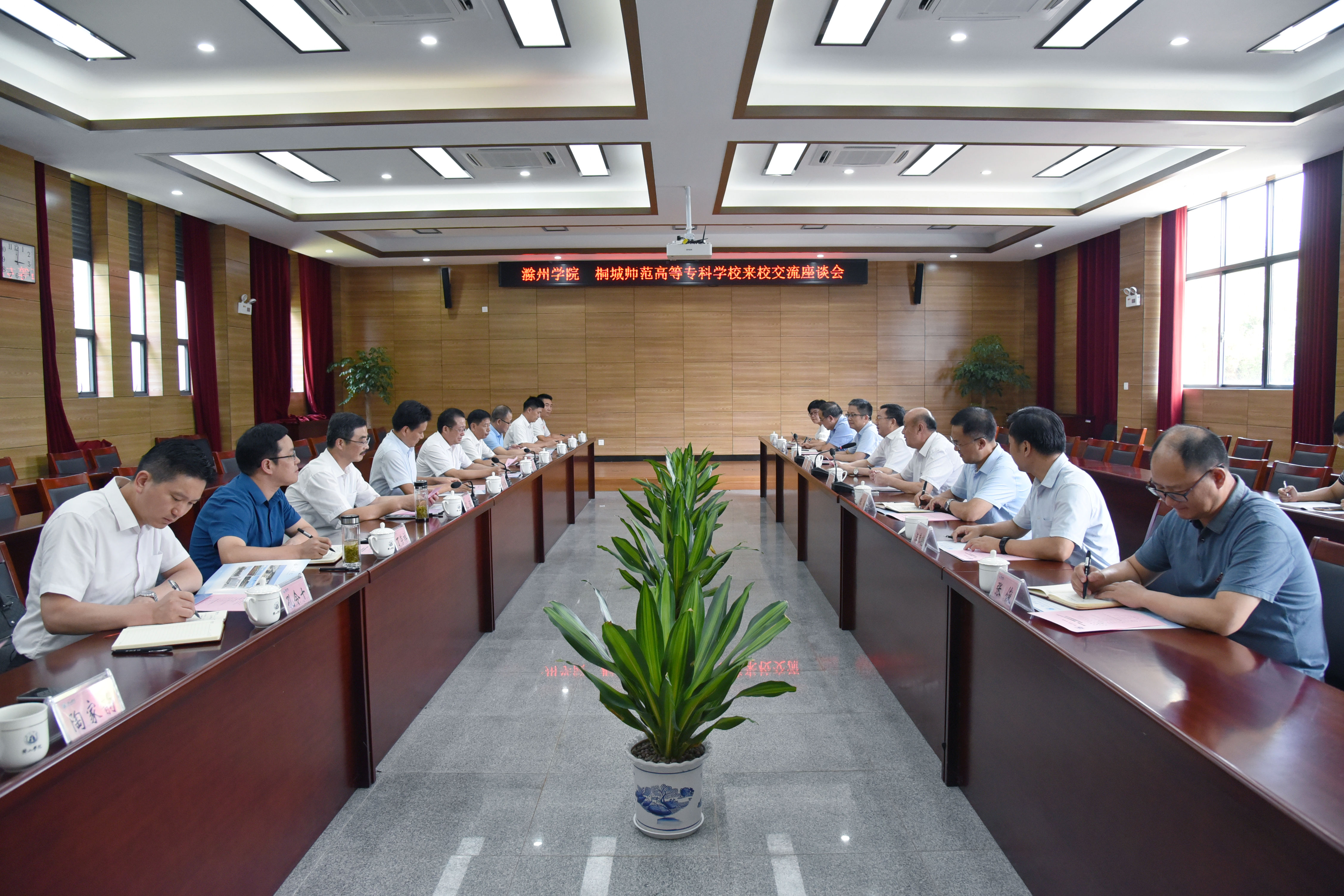 7月28日下午,滁州学院党委书记毕明福,桐城师范高等专科学校党委书记王子龙,党委副书记、校长沈波一行来校交流。我校党委书记汪枫,党委副书记胡家俊,党委委员、副院长李庆宏热情接待了毕明福一行。