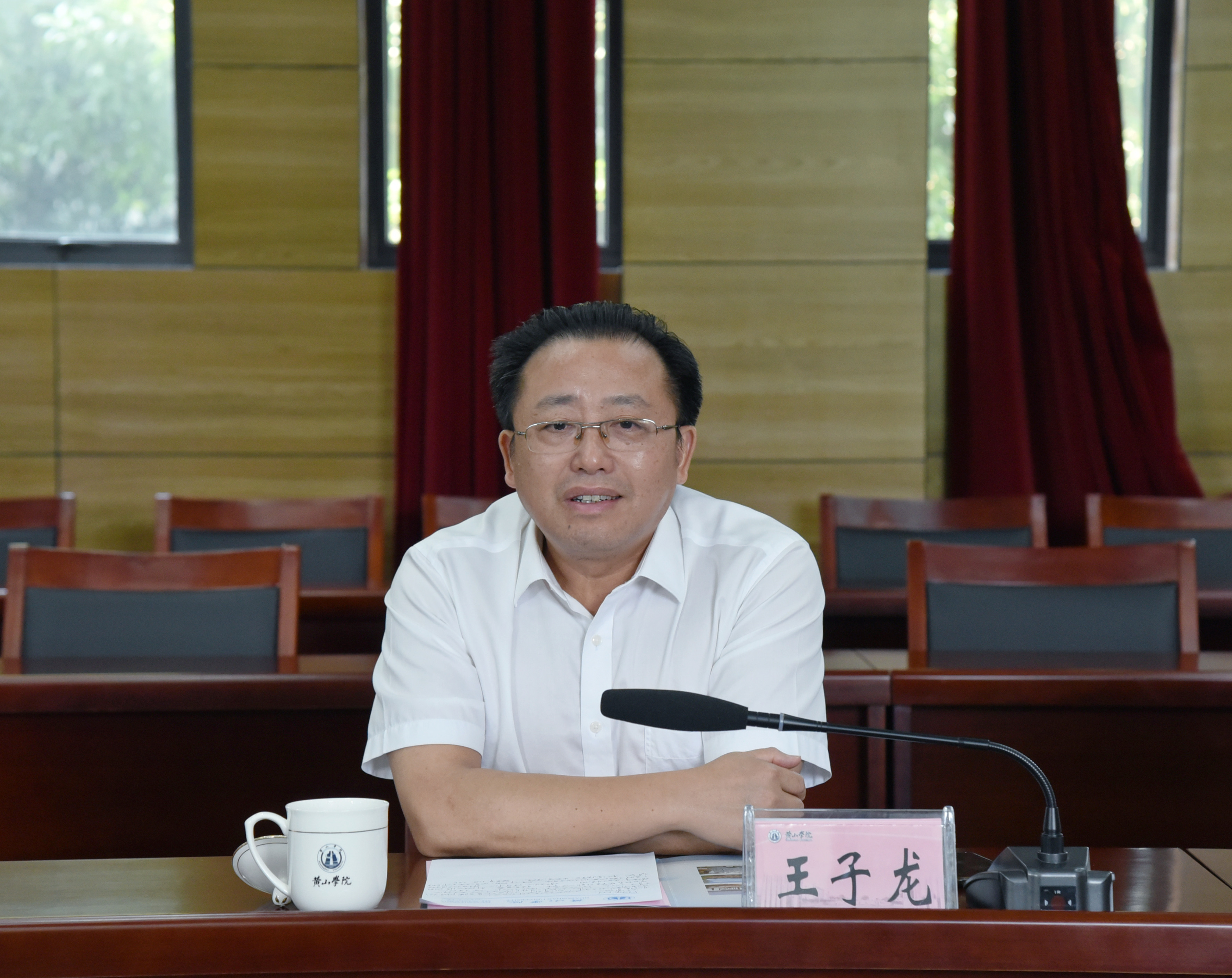 王子龙简要介绍了桐城师范高等专科学校的基本情况。他表示,近年来,黄山学院各项事业均取得了可喜成绩。希望通过此次交流,借鉴黄山学院在党建和事业发展方面的成功经验,加快推进学校各项事业高质量发展。
