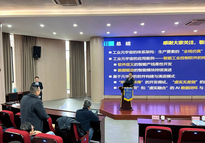 徐凯教授作题为“基于数字孪生的智能工业控制软件开发及演进”的报告。报告提出“数字孪生+云原生”的开发模式与平台,初步实现了智能工控软件开发的自动化。通过构建真实产线的软硬件全栈虚拟镜像,并将智能感知、控制、决策等核心组件微服务化,在孪生环境中完成“所见即所得”的产线构建与流程编排,以及“虚实无差别”的软件生成和调试部署,实现了产线控制软件的低代码开发和灵活定制。同时,通过“边云协同”、“虚实融合”的AI数据闭环与持续学习,实现了AI算法的性能监测、在线学习和持续优化。最终实现智能工控软件的持续开发、持续演进与持续交付。