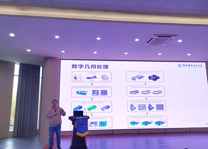 11月11日, “GDC专委会走进高校”第2期走进黄山学院,在我校文端楼二楼报告厅举行主题为“智能几何计算”的学术报告。国防科学技术大学教授徐凯、清华大学副教授张松海、中国科学技术大学教授陈仁杰、中国科学技术大学副教授傅孝明分别作特邀报告。中国科学技术大学刘利刚教授出席会议并致辞。会议由教务处副处长胡建伟教授主持。我校200余名师生代表参加了会议。