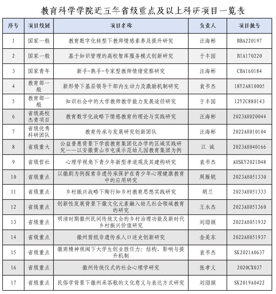 教研示范。狠抓教育教学改革,充分发挥教研对教学的示范促进作用。五年来,获批省级质量工程25项、校级46项、省级教学成果奖二等奖1项;主编国家级、省级教材20部。学前教育专业入选省一流专业建设点、省专业综合改革试点专业和省级教学创新团队,并接受教育部师范类专业认证;应用心理学专业入选省专业综合改革试点专业、省基层教研室、省级教学创新团队和省级示范实验实训中心;小学教育专业纳入安徽省第一批次本科招生。