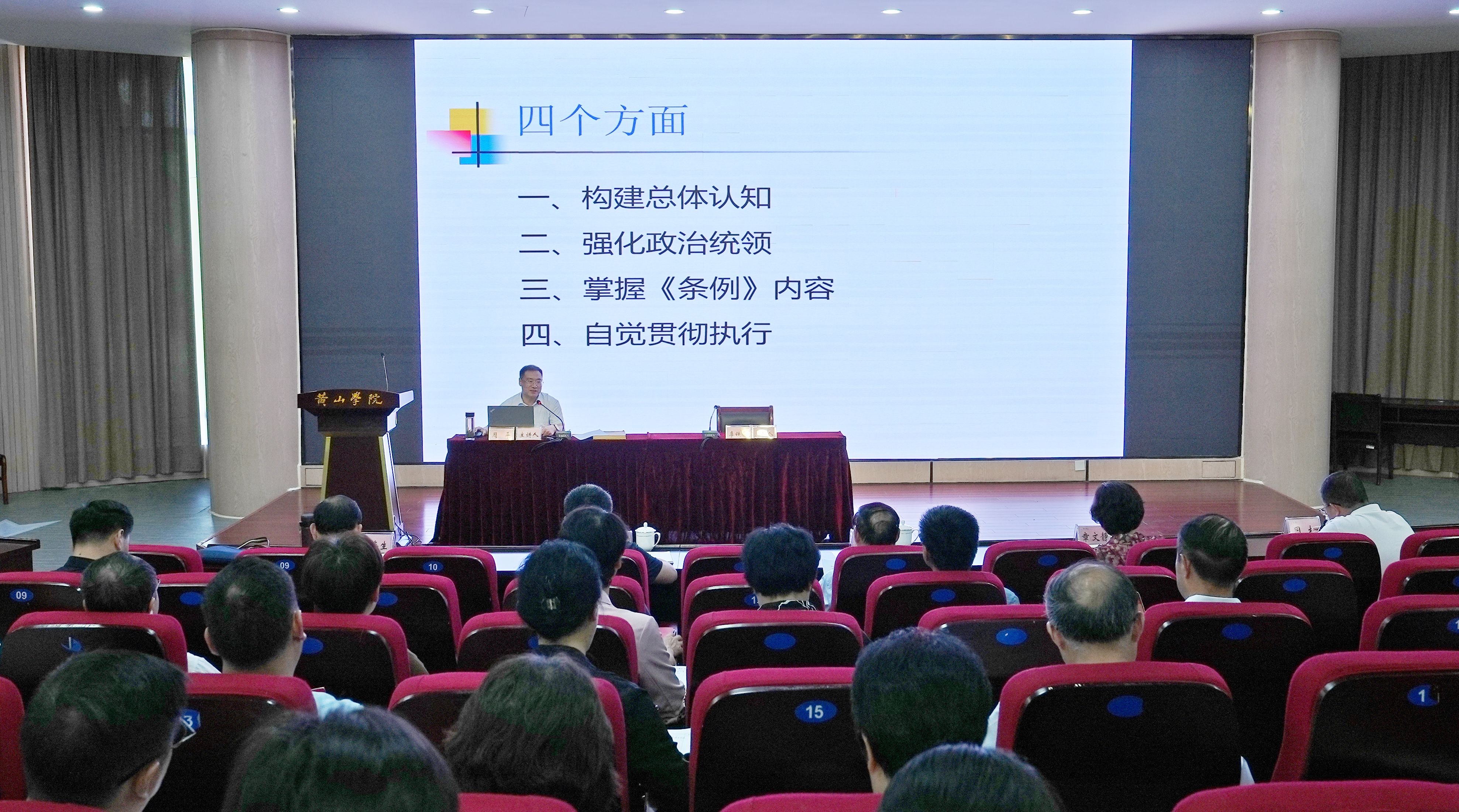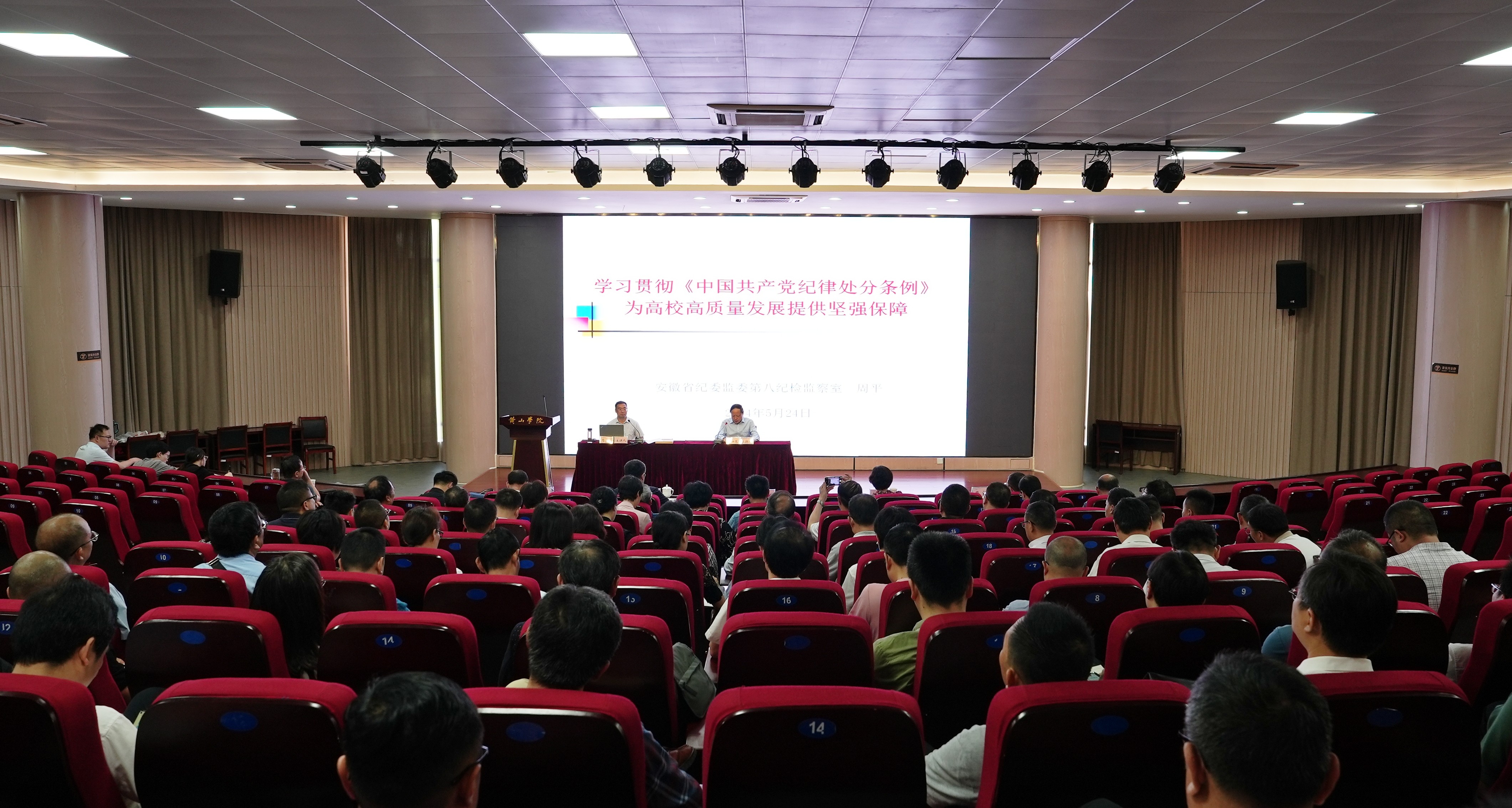 周平以《学习贯彻<中国共产党纪律处分条例> 为高校高质量发展提供坚强保障》为题,从四个方面深入解读了党纪处分条例。一是构建总体认知,解决为什么学、怎样学、学习成效的问题;二是强化政治统领,旗帜鲜明讲政治。要善于从政治上看问题,站稳立场、把准方向;三是紧密结合高校实际和典型案例重点进行条款解析,指导大家理解掌握《条例》内容;四是自觉贯彻执行党纪处分条例。报告主题鲜明、内容丰富,既有深入的理论思考,又有切合高校实际的具体案例解析,对于我校深入学习党的纪律、学习贯彻《中国共产党纪律处分条例》、加强党风廉政建设、推进全面从严治党具有重要的指导意义。