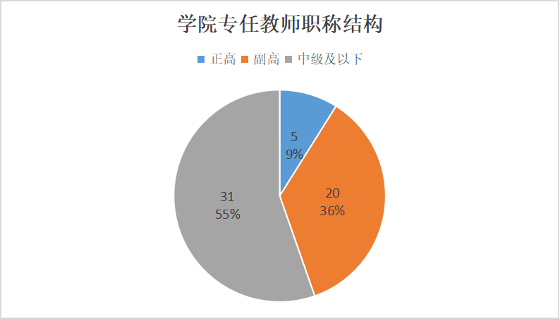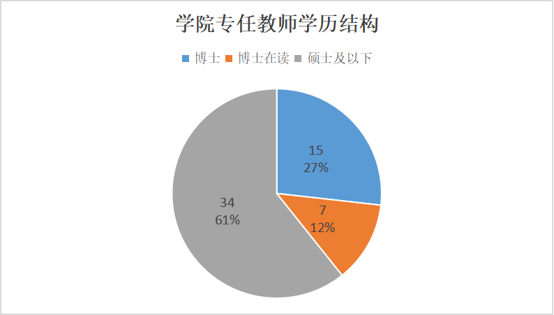 学院实施外引内培双向并重式举措推进教师博士化工程,目前学院专职教师中博士23人(含在读),占比41%,高级职称26人,占比46%,师资队伍结构不断优化。