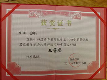 郭宏斌相继获得屯溪区“五一劳动奖章”和黄山市“五四好青年”荣誉;李之琳当选屯溪区十四届人大代表,充分展示学院教师服务地方风采。5年来,学院获得省级以上科研项目35项,累计到账科研经费542.54万元,发表二类以上论文22篇,出版专著2部,主(副)编教材11本。