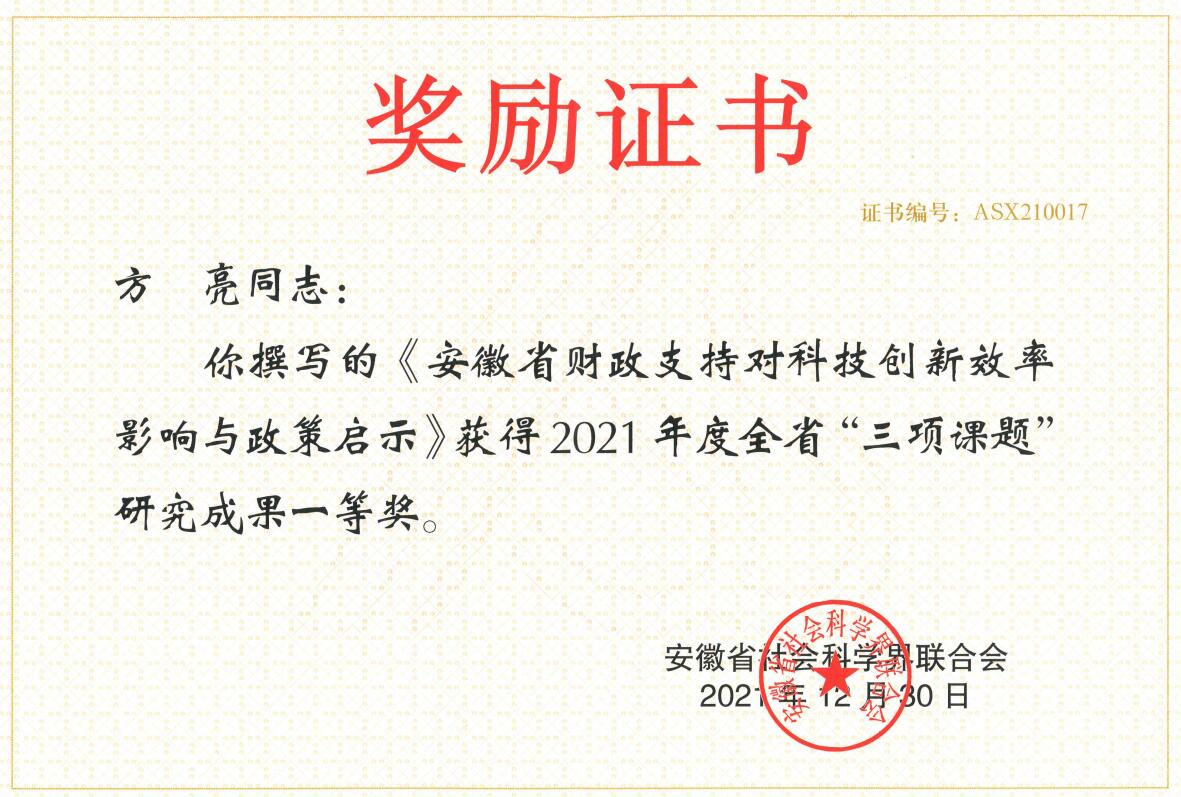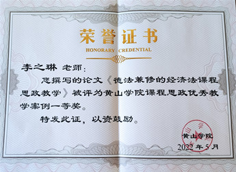 学院教师科研获奖证书