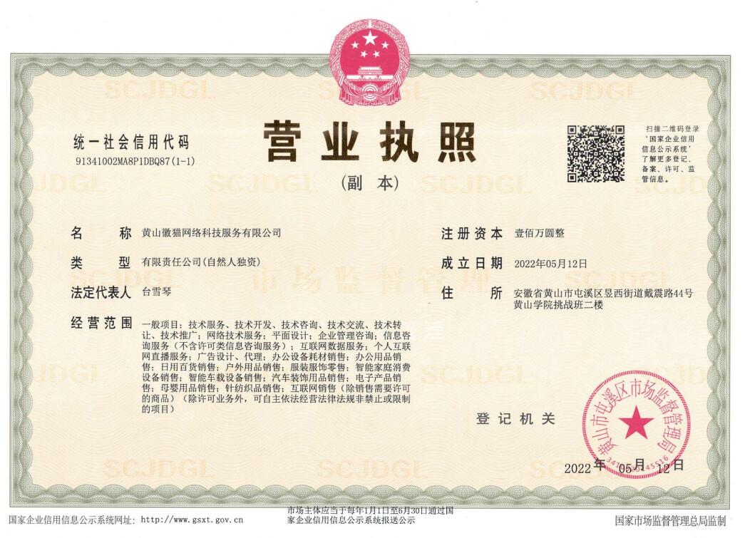 学生创业营业执照