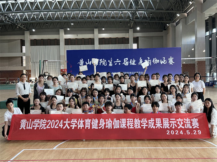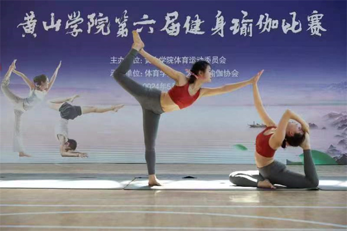 5月29日下午,黄山学院第六届大学生健身瑜伽比赛在率水校区体育馆二楼主馆举行。本次比赛由黄山学院体育运动委员会主办,体育学院承办,校大学生瑜伽协会协办。共有来自10个学院的120余名学生参加。比赛设置甲组(非体育专业),分设男子自编套路、女子自编套路、双人、集体等四个项目。经过激烈角逐,旅游学院管思南、艺术学院韦康和化学化工学院康聪聪获得男子自编套路前三名;教育科学学院程瑶、冯小云、黄宇锾获得女子自编套路前三名;教育科学学院刘影和高萌萌、陈悦和叶佳佳、外国语学院钱若怡和教育科学学院张乐园获得双人前三名;教育科学学院郭曼曼、文化与传播学院朱满昕、生命与环境科学学院潘美婕等同学获得集体前三名。