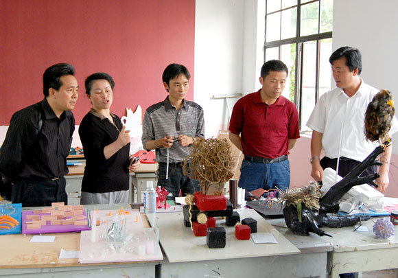 会后,樊嘉禄和陶士璜一行参观了艺术设计专业学生的立体构成和模型制作作业展,对学生的动手能力给予肯定和鼓励。