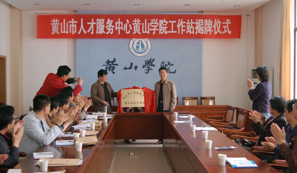 4月30日下午,党委副书记李家祥,黄山市人事局党组书记、局长、市编办主任洪长荪为黄山市人才服务中心黄山学院工作站揭牌。