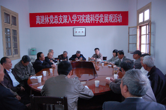 党总支副书记王瑞珍就离退休党总支开展学习实践活动的方案、进展情况及后一阶段的打算等方面进行了汇报。与会的老同志各抒己见,共谋学校的定位、发展、管理、科学行政等,同时对发展成果共享等提出了建议。