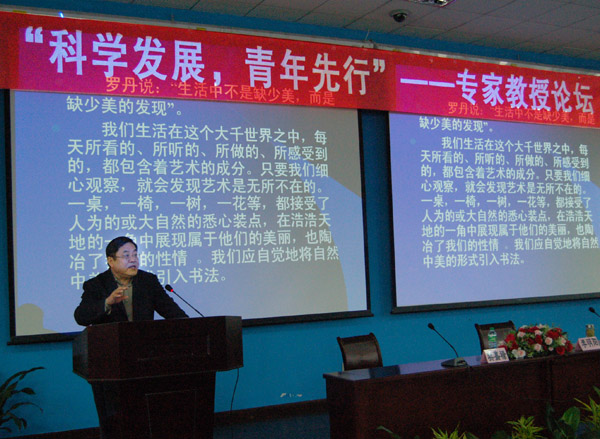 此次报告为团委特色工程之一“科学发展,青年先行”专家教授论坛的开篇之作。来自文学、艺术、生环及化学等专业的300多名学生聆听了报告。