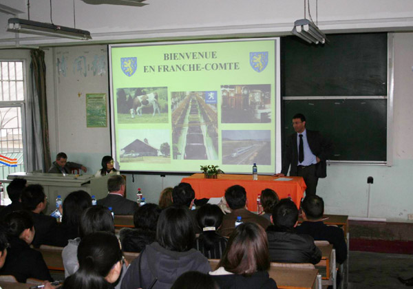以法国佛朗什孔泰大区教育局国际交流项目主管福罗朗斯・圣-伊冈女士为首的教育代表团于4月1日至4月6日期间访问了我校,并就双方师生交流和教育合作等事宜进行了多次磋商。校党委书记汪良发和院长汪建利分别会见了法国佛朗什孔泰大区教育代表团,并希望双方能为具体落实项目成果、进一步推进中法在教育领域的合作而共同努力。