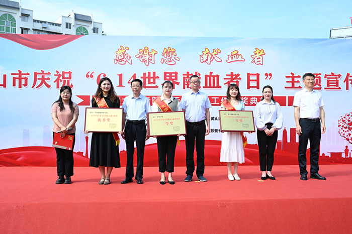 “6.14”是世界献血者日二十周年,为庆祝这一节日,感谢献血者的无偿献血行为,弘扬无偿献血的无私奉献精神,当天,市卫生健康委员会、市红十字会、市教育局、共青团黄山市委员会在昱中花园联合开展“6.14世界献血者日”主题宣传活动暨大中专院校无偿献血工作颁奖典礼。我校荣获2023年度学校无偿献血贡献集体奖二等奖,我校汪春艳老师、周莉莉老师,吴欣荣同学等3名师生荣获2023年度学校无偿献血优秀组织个人。