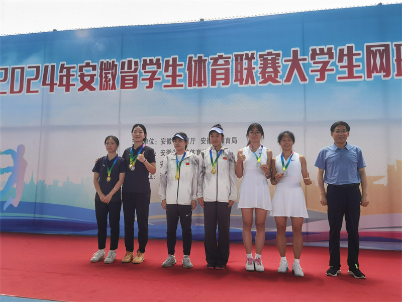 6月17日-25日,2024年安徽省学生体育联赛大学生网球比赛在滁州市天长中学圆满落幕。本次比赛由安徽省教育厅、安徽省体育局主办,安徽省学校体育协会执行,安徽师范大学、安徽省学校体育协会网球分会承办。赛事设置了甲、乙、丙三个组别。来自全省50多所高校的500余名运动员和网球爱好者齐聚一堂、同台竞技。我校由体育学院、公共学院10名学生组成的代表队参加了甲组、丙组的比赛,斩获1枚银牌、3枚铜牌,更以女双第二名的骄人战绩实现了我校在此项目同类比赛上的突破。