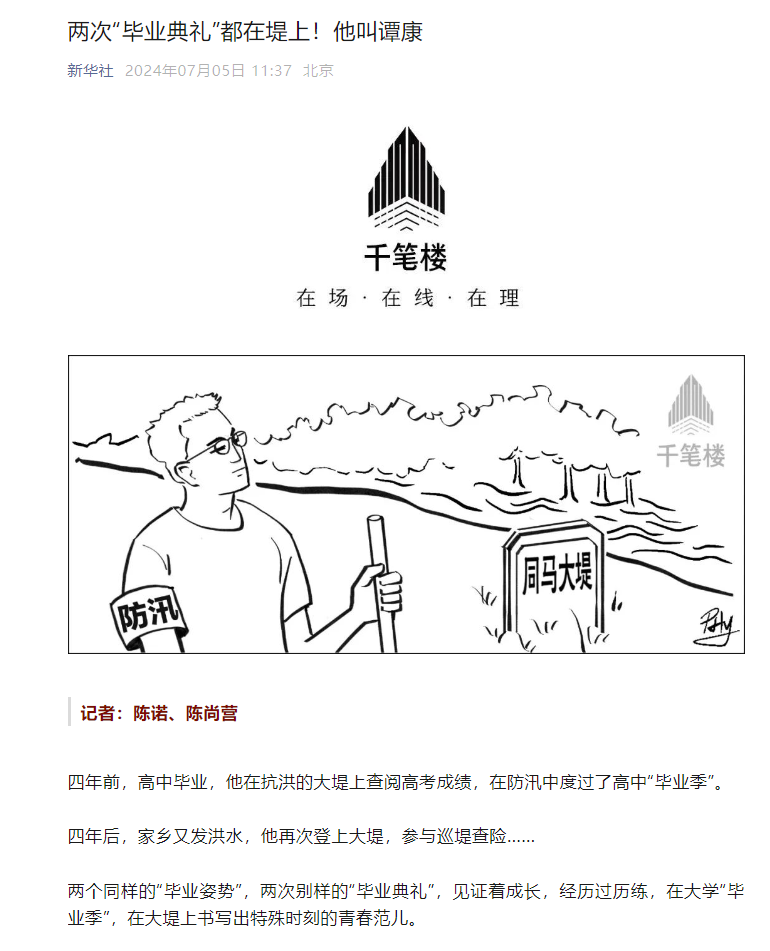 2、新华社:两次“毕业典礼”都在堤上!他叫谭康 https://mp.weixin.qq.com/s/0KKMrWG8cTGm45aRYXyLVw