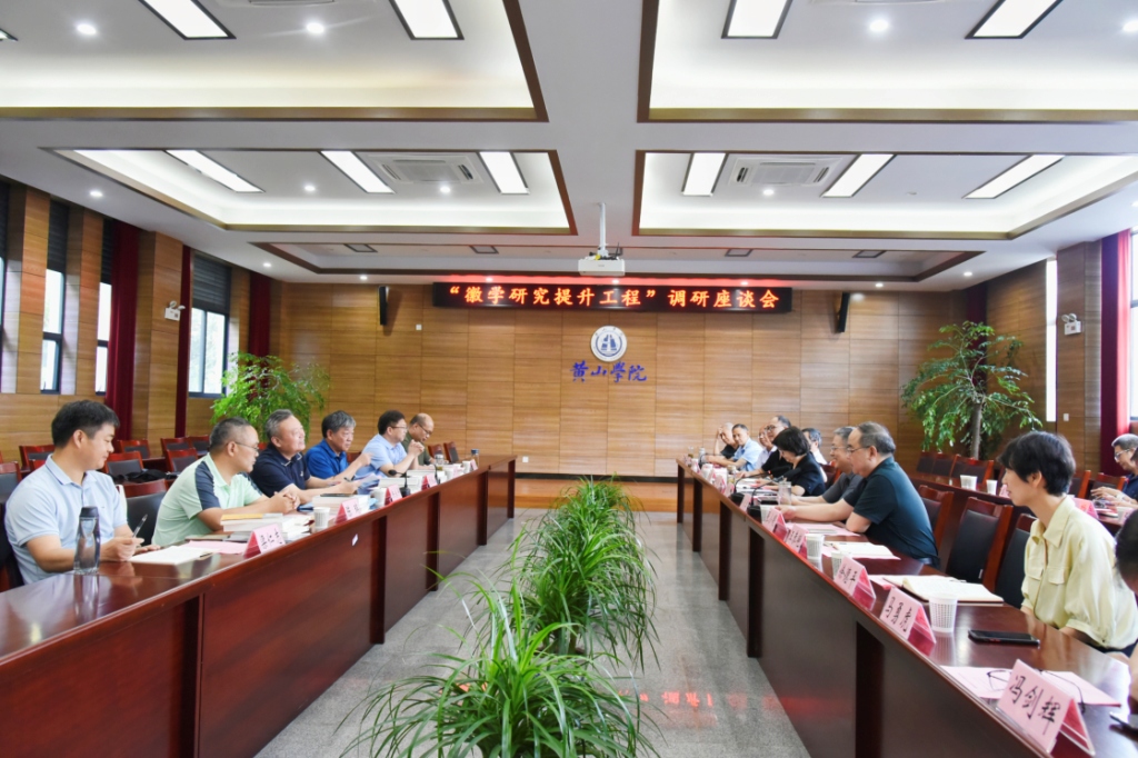7月9日,“徽学研究提升工程”调研座谈会在我校举行。省政协文化文史和学习委员会副主任,省社科联原党组书记、常务副主席,省徽学学会会长洪永平,我校党委副书记、院长李庆宏,党委委员、副院长张小明,黄山市社科联党组书记、主席汪明洁,市直各单位徽学专家出席会议,我校办公室、科研处、图书馆、宣传部、文学院等部门负责人以及相关教师代表参加座谈会。