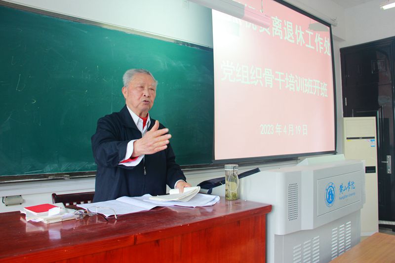 校关工委五老报告团原团长汪柏树教授在离退休党组织骨干培训班上作形势报告