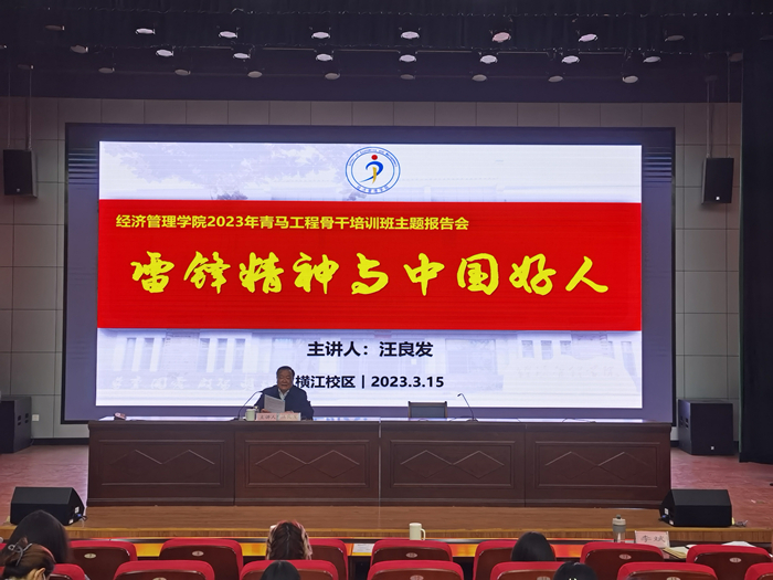 校关工委常务副主任、原校党委书记汪良发为“青马工程”骨干培训班作主题报告