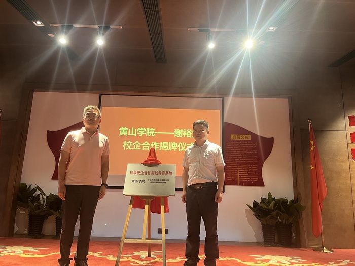 7月11日下午,我校与谢裕大茶叶股份有限公司合作共建教师应用能力发展工作站、省级校企合作实践育人教育基地揭牌仪式在徽州区谢裕大茶博园举行。校党委副书记章文静、谢裕大茶叶股份有限公司行政总监桂利权出席揭牌仪式,我校人事处、教务处、文学院等有关负责人和教师代表以及谢裕大有关部门领导参加揭牌活动。揭牌仪式由谢裕大茶叶股份有限公司总经办主任余文明主持。