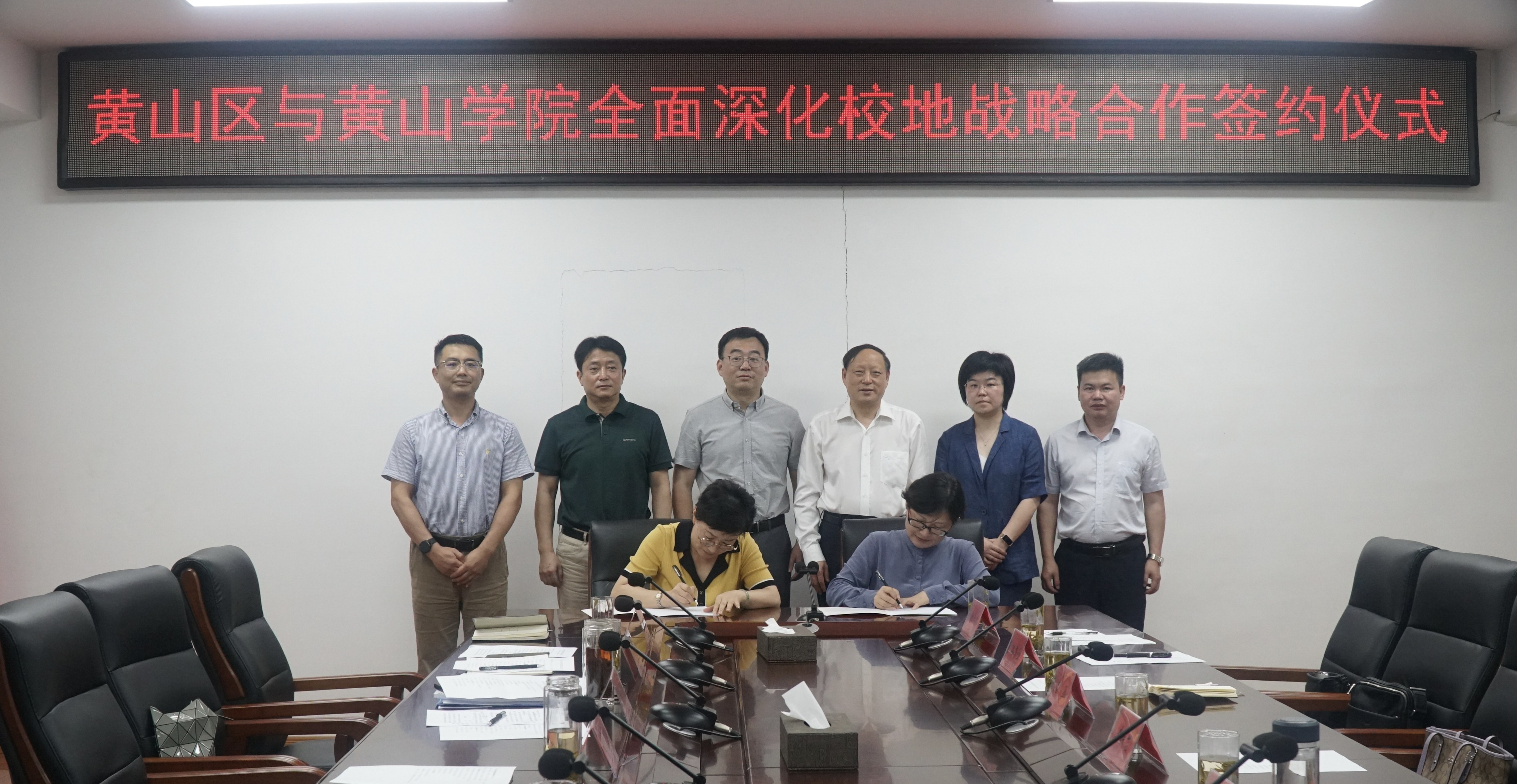 校办公室、人事处、教务处、科研处、旅游学院、艺术学院、建筑工程学院相关负责人及黄山区区委办、政府办、组织部、社工部、教育局、人社局、自规局、住建局、农业农村局、文旅体局、仙源镇负责人等参加签约仪式。